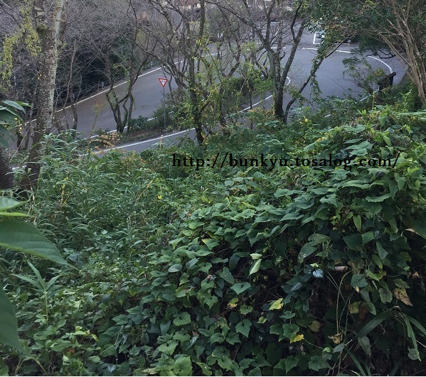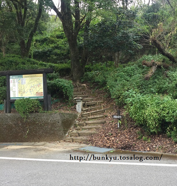 信号を渡ってからは、岡豊山に登る急な坂が続きます。